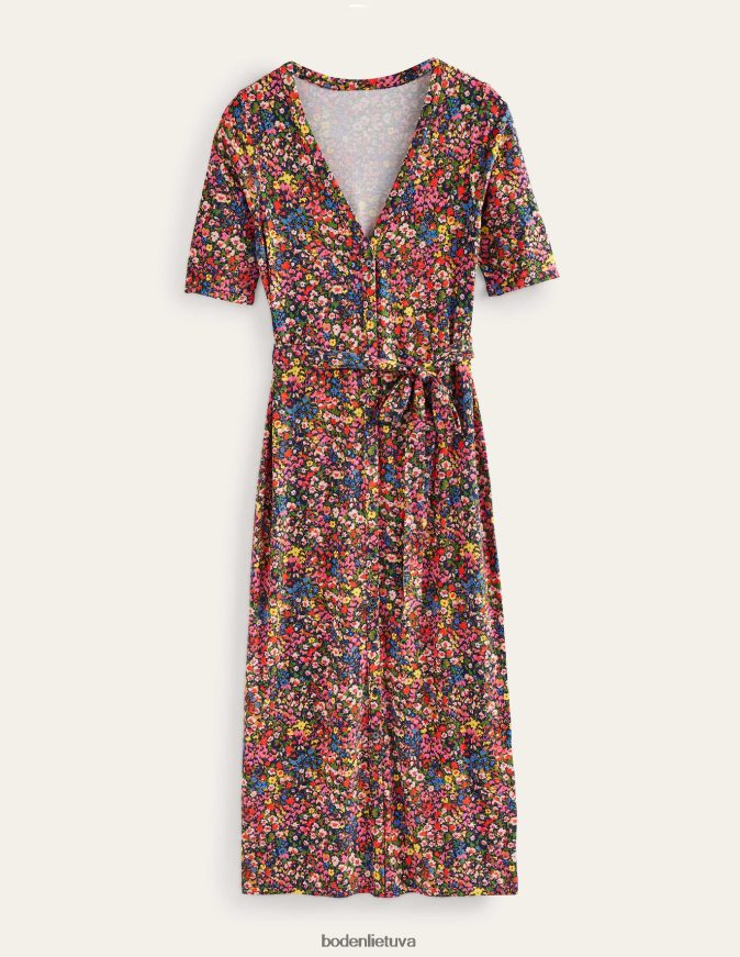 ši elastingo trikotažo midi suknelė daro įtaką be vargo. jis iškirptas taip, kad būtų lengvas siluetas, kuris prasiskverbia per kūną su sagomis užsegamu priekiu, pasirenkamu juosmens kaklaraiščiu ir trumpomis rankovėmis.