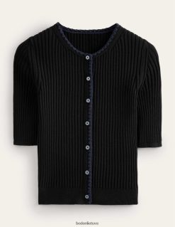 Papuoštas kontrastinga nėrimo apdaila, šis medvilninis megztinis suteikia daug tekstūros patrauklumo. briaunota apdaila subtiliai priglaudžia ir jūsų figūrą.