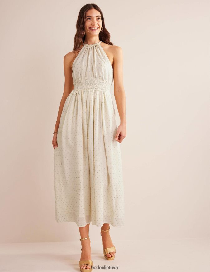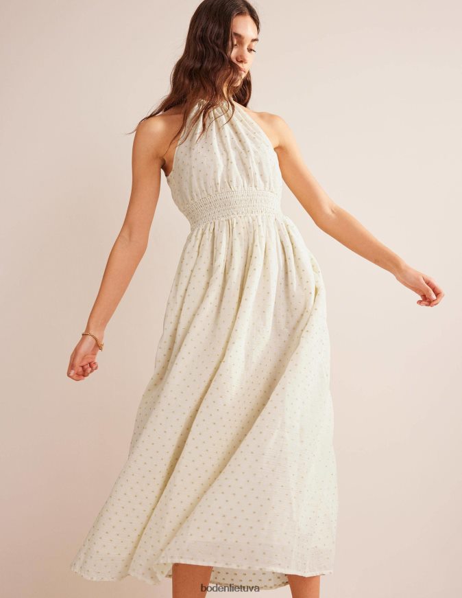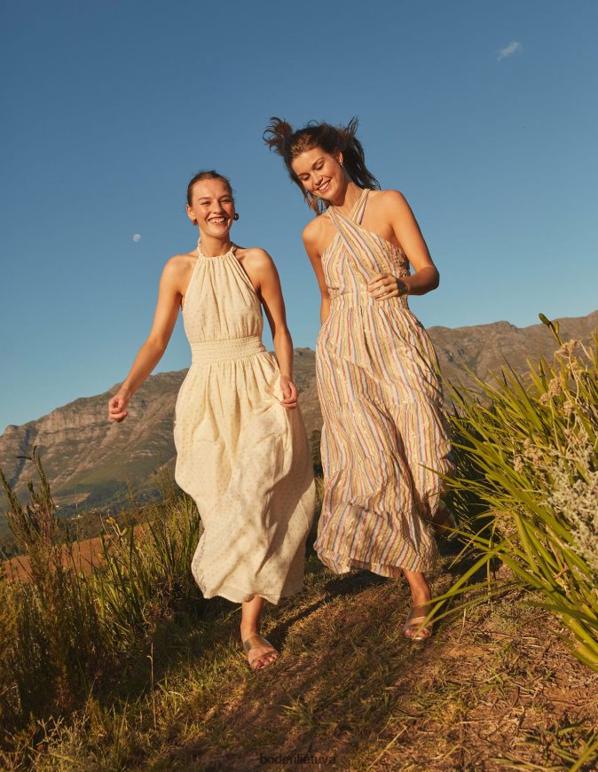 Suknelė su apykakle yra kažkas tokio elegantiško, ypač kai ją taip pat lengva dėvėti kaip šią. Nukrenta iki pat grindų, šis maxi stilius turi nudažytą juosmens plokštę, kuri suteikia raiškumo ir lengvumo pusiau aptemptai formai. išmėginkite subtilius blizgančius siūlus, papuošdami savo šlifuotus papuošalus.