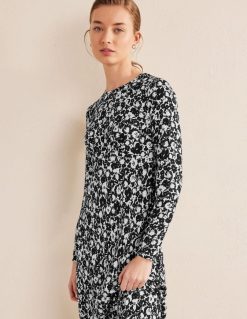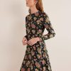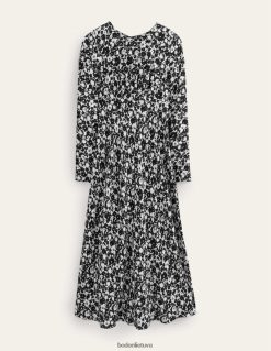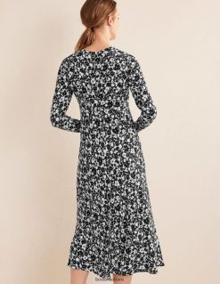 apranga lt Boden moterys Midi arbatos suknelė su įgula kaklu Black & Bloom siluetas 284XZZ1511