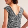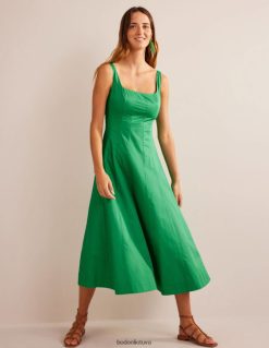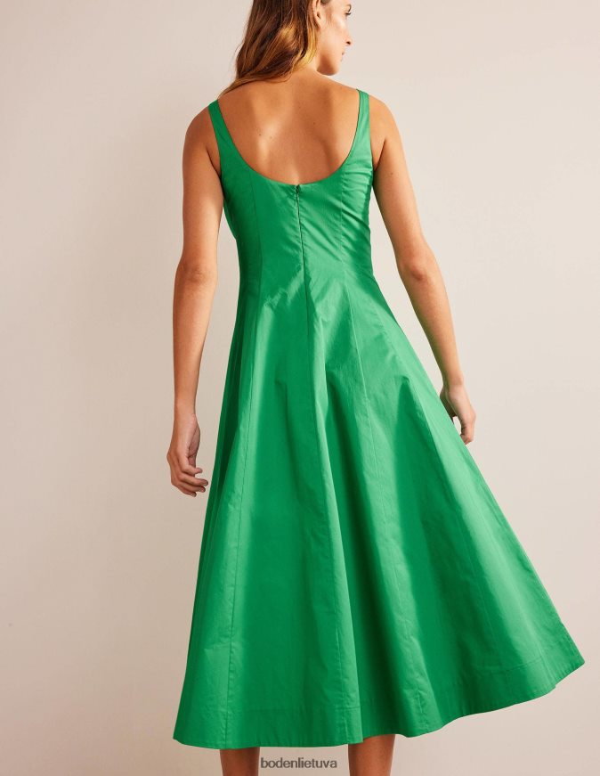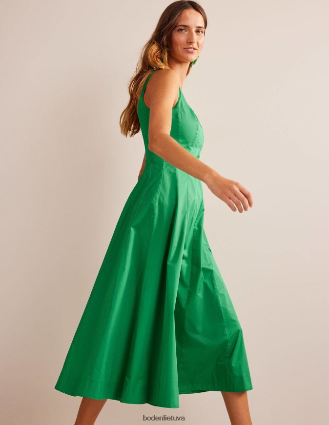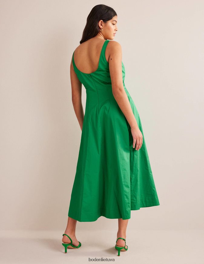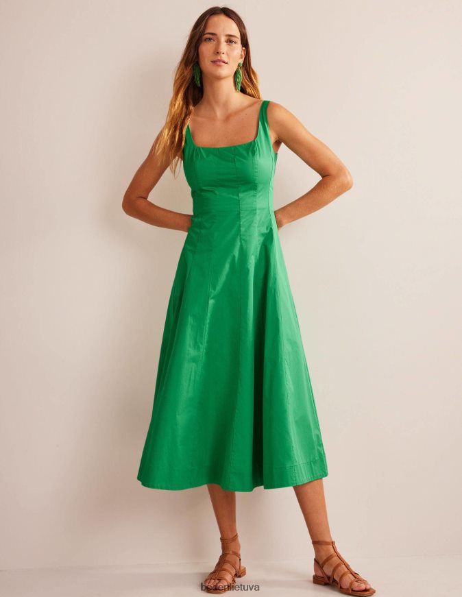 Šios midi suknelės konstrukcija su skydais suteikia jai sklandų prigludimą ir ryškų siluetą. jis pagamintas iš pimos medvilnės, kad būtų minkšta rankena ir tinka kvadratinei iškirptei ir nugarai.