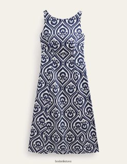 valties kaklas, prigludęs liemenėlis ir platėjantis sijonas suteikia šiai medvilnės mišinio midi suknelei elegantiškos formos. visas spaudinys yra lengvas būdas padaryti pareiškimą.