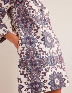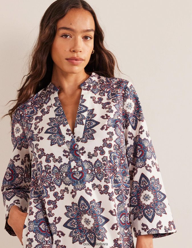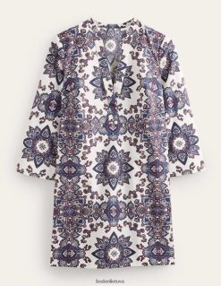 Su įpjova V formos iškirpte ir ilgomis rankovėmis nesunku pastebėti, kad ši trapi medvilninė mini suknelė perima kaftano stilių. taip pat puikiai tinka ant bikinio pakeliui į vakarienę arba su džinsine striuke ir batais kasdien.