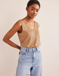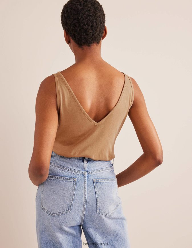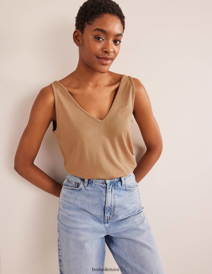 liocelio ir medvilnės mišinys daro šį liemenės viršų ypač minkštą ir pralaidų orui – puikiai tinka šiltam orui. jis iškirptas pagal pritaikytą siluetą su gilia v formos iškirpte, kuri atspindima gale.