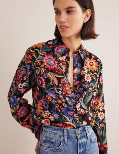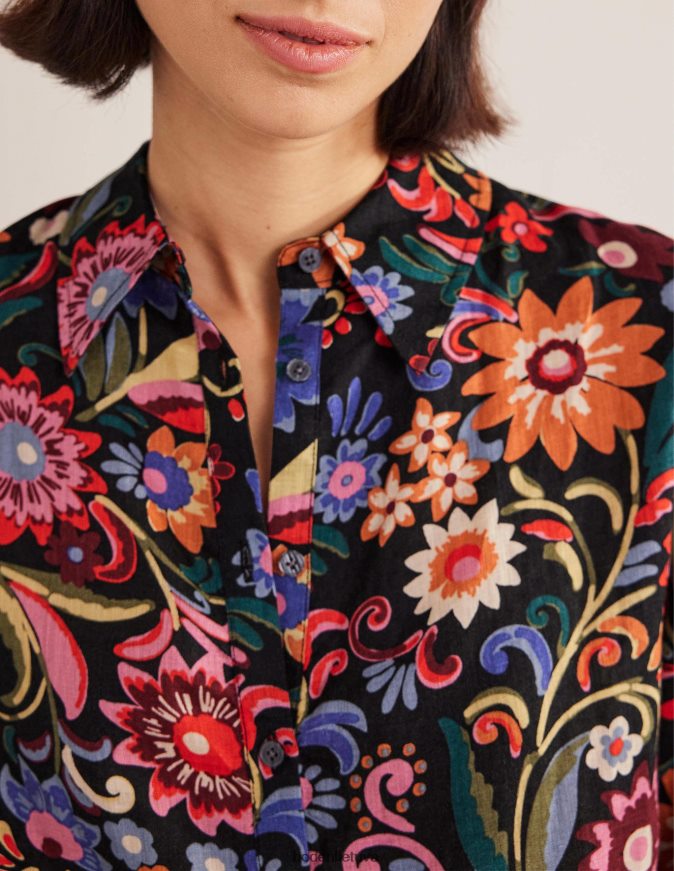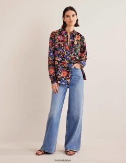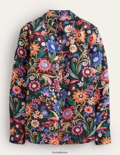 apranga lt Boden moterys nauji lininiai marškiniai juoda ir gardenija pop 284XZZ2592