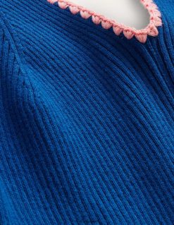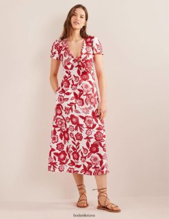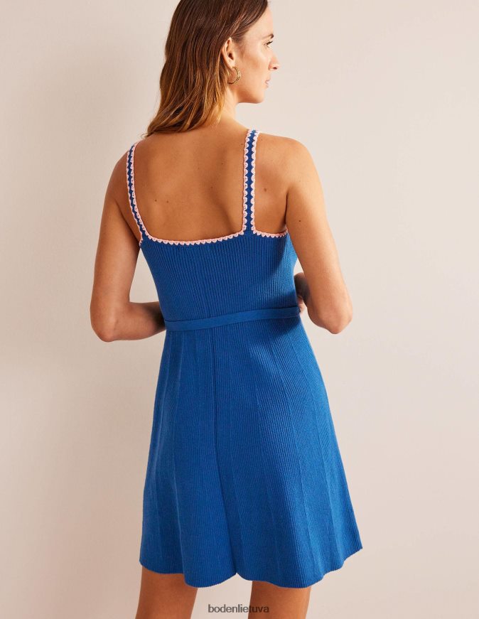 Šios megztos medvilninės midi suknelės briaunuota apdaila suteikia jai figūrą. jis užbaigtas kontrastingais nėrimo antgaliais ir surišamu diržu, kad juosmeniui būtų suteiktas apibrėžimas, jei norite.
