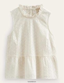 Šio megzto medvilninio viršaus briaunuota apdaila pabrėžia prigludusią formą – jis prigludęs prie kūno, švelniai apkabindamas rėmą. parodykite kontrastingus nėrimo papuošalus, dėvėdami juos atskirai.