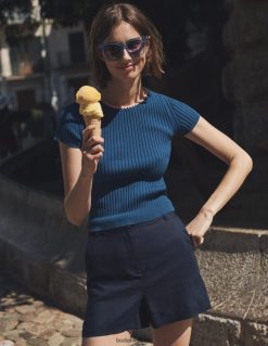 Šio megzto medvilninio viršaus briaunuota apdaila pabrėžia prigludusią formą – jis prigludęs prie kūno, švelniai apkabindamas rėmą. parodykite kontrastingus nėrimo papuošalus, dėvėdami juos atskirai.