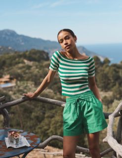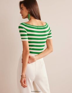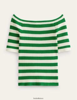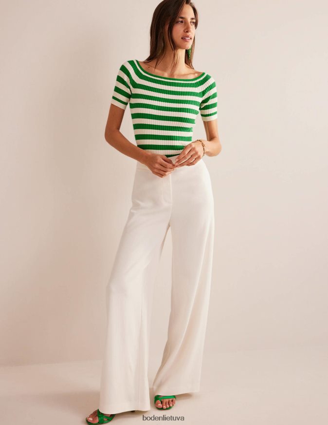 Šio medvilnės mišinio viršaus briaunuota apdaila palengvina prigludusią formą. jis sukirptas trijų ketvirčių ilgio rankovėmis ir patogiai sėdi nuo peties.