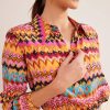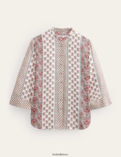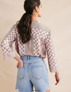 Kontrastiškos margintos plokštės suteikia šiems žoržetiniams marškiniams žavesio. iškirpti, kad priglustų ramiai, glostančiai krenta ant kūno.