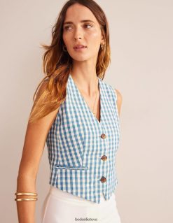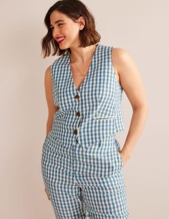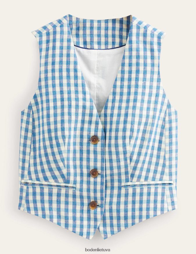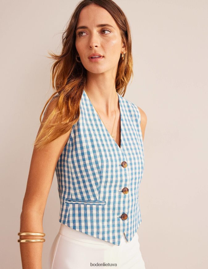 apranga lt Boden moterys pasiūta lininė liemenė mėlynas ir baltas ginghamas 284XZZ2564