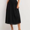 Šis sijonas su plokščiomis konstrukcijomis apkabina juosmenį ir klubus, o tada patenka į lengvą, erdvų vidutinio ilgio apvadą. pasirinkite iš neutralių arba ryškių spalvų parinkčių.