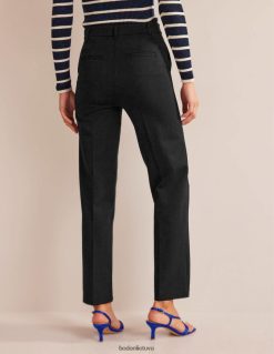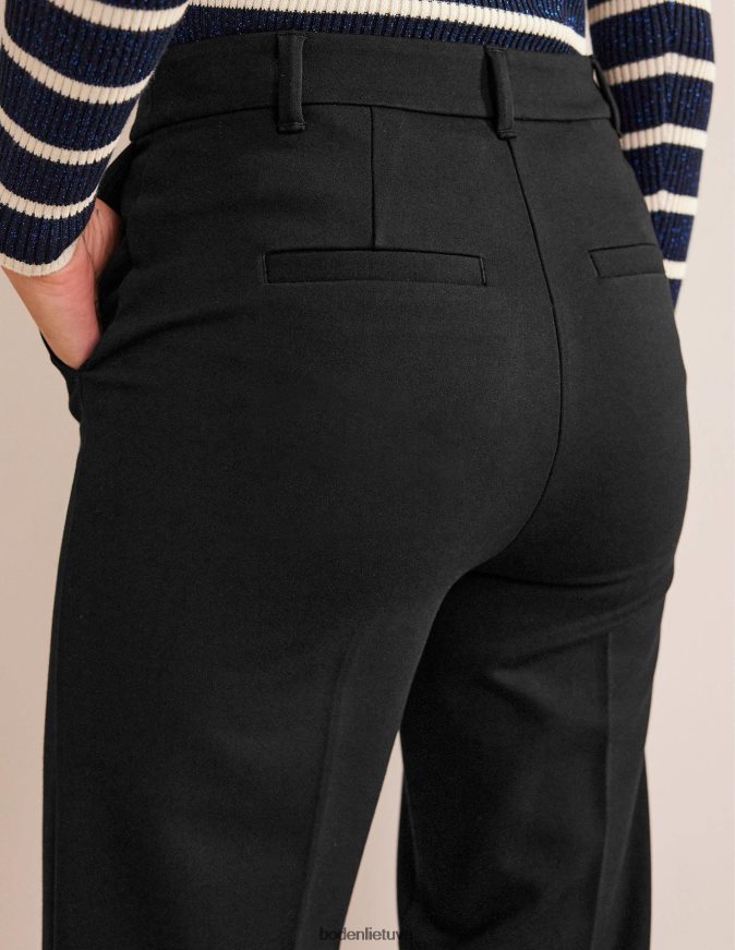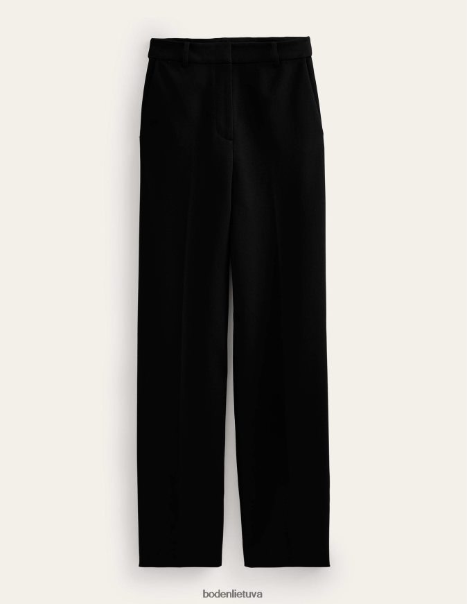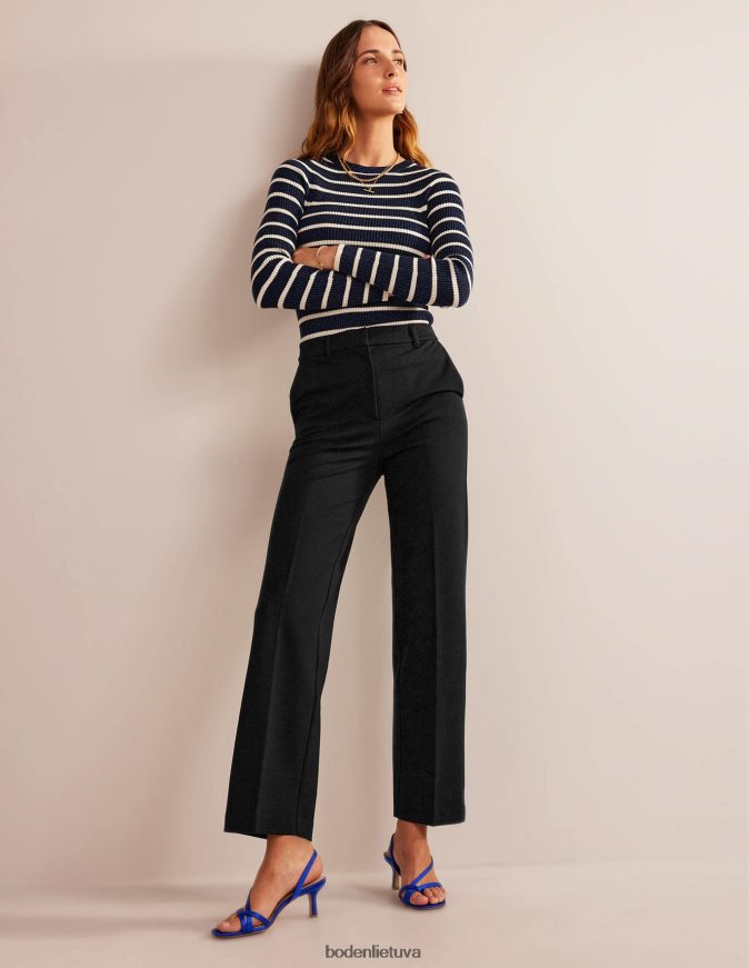 paprastas siuvimas: šios vidutinio aukščio tiesios kelnės iškirptos iš elastingo ponte trikotažo, kuris apkabina kūną. apsirenkite juos marškiniais ir apatiniais marškinėliais.