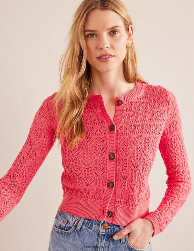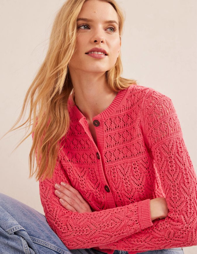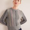 pointelle mezginys išlaiko lengvą ilgomis rankovėmis esantį megztinį šiltesnėmis dienomis, o šiek tiek sutrumpintas ilgis puikiai dera su aukštais džinsais ir kelnės.