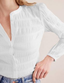 šių medvilninių marškinių dygsniuotas siūlas sukuria tekstūros apdailą ir suteikia kasdienei išvaizdai įdomumo. švelniai pūstos rankovės subalansuoja prigludusį siluetą.