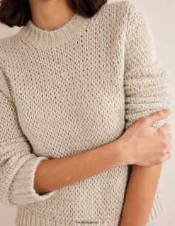 Paverskite šį pūkuotą džemperį savo naujuoju garderobo pagrindu. stambus mezgimas, platėjantys rankogaliai ir briaunoti apdaila suteikia patrauklumo.