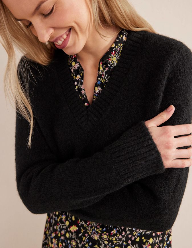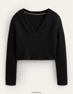 apranga lt Boden moterys pūkuotas džemperis su V formos iškirpte juodas 284XZZ1707