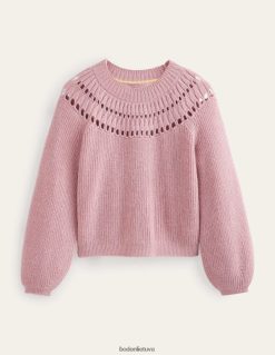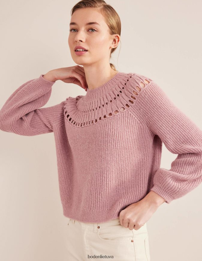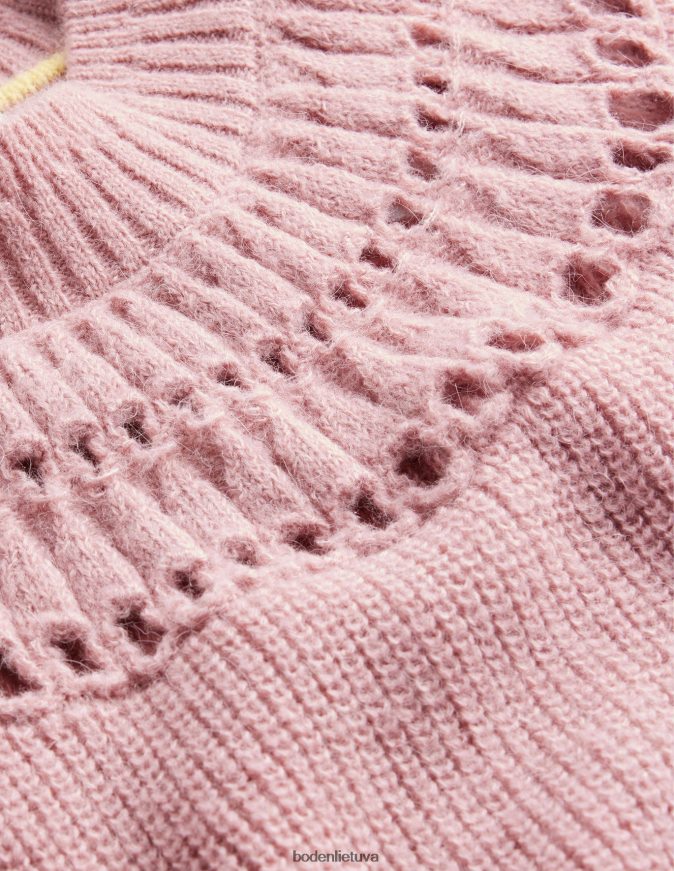Šis briaunotas megztinis yra išsuktas iš itin purių verpalų, kad būtų dar minkštumo ir tekstūros. puantelės detalės jungui suteikia moteriško žavesio.