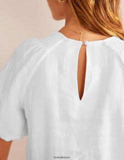 Smacked pūstos rankovės suteikia šiai mini suknelei atsipalaidavimo jausmą. jis iškirptas iš perdirbto lino iki pamaininio silueto, idealiai tinka nedarbingoms dienoms.