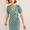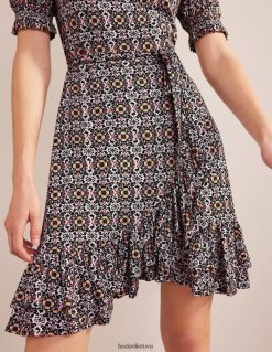 Dėl šios tamprio trikotažo mini suknelės raukinių kraštų kiekvienas judesys (ypač šokių) atrodo elegantiškas. Smocked detalės ir juosmens kaklaraištis suteikia išskirtinumo.