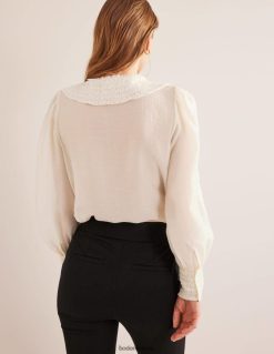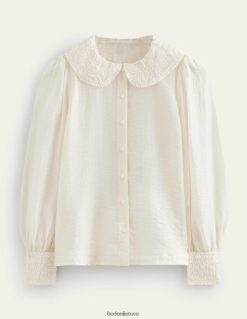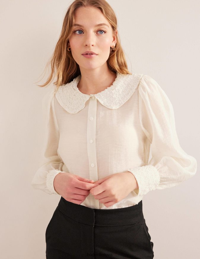 Šie organzos marškinėliai yra sumaišyti naudojant tencel ir liocelį, kad būtų lengvas ir erdvus. raityta Peter Pan apykaklė ir derantys rankogaliai suteikia žavingą apdailą.
