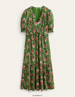 Ši krepinio midi suknelė negaili smulkmenų. Smocked rankovės suteikia moteriškumo, o šoninių siūlių kišenės užtikrina tobulą apdailą.