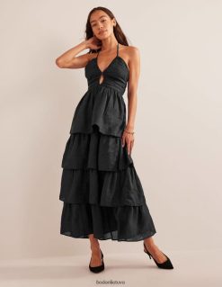 šios maksi suknelės raukšlėtas liemenėlis ir iškirptė daro ją vienodai romantišką ir elegantišką, o ra-ra pakopinis sijonas suteikia apimties, kuri juda su jums, kai keliaujate į šokių aikštelę.