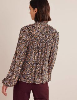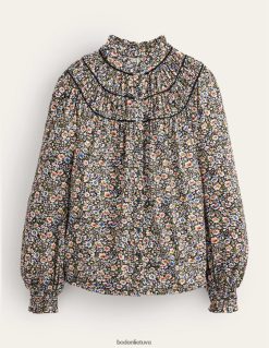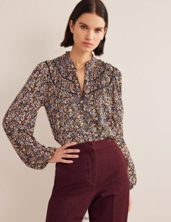 Suteikite kasdienio įvaizdžio išraiškingumo su šiais banguotais marškinėliais palaidinėmis rankovėmis. Iškirptas iš skysto krepo, jį lengva formuoti ir sluoksniuoti.