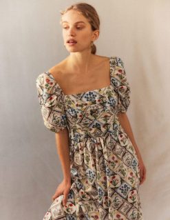 Su pūstomis rankovėmis ir elegantišku kvadratiniu kaklu, šis pamušalas midi yra persmelktas romantiško žavesio. rumbuotas liemenėlis ir aptempta nugarėlė suteikia ryškumo.
