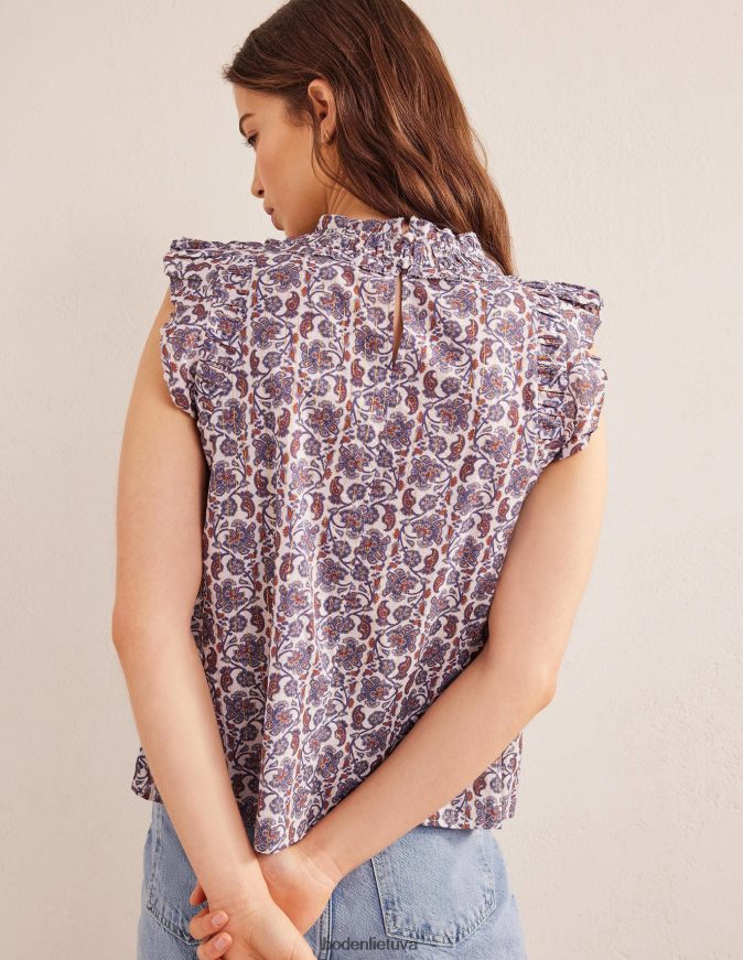 apranga lt Boden moterys rumbuotas detales viršus be rankovių dramblio kaulo ir bloko paisley 284XZZ1064