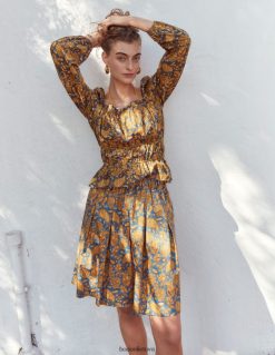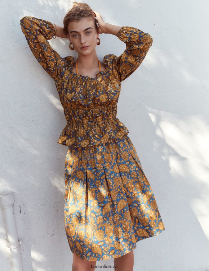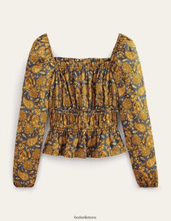 Šio medvilninio viršaus elastines pūstas rankoves galima nešioti ant peties arba nuo jo, kad būtų sukurta kitokia išvaizda. per kūną puošiančios ir raižytos plokštės sukuria figūrą išryškinantį siluetą, kuris puikiai dera su plačiomis džinsais ar kelnėmis.