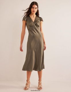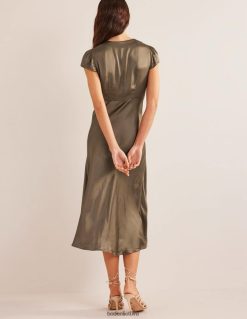 šioje satino midi suknelėje yra kažkas tokio elegantiško. jo priekis yra apvyniojamas ir lengvai slysta per rėmą, kad būtų glostanti apdaila. dėvėkite aukštakulnius arba aukštakulnius – niekuo nesuklysite.