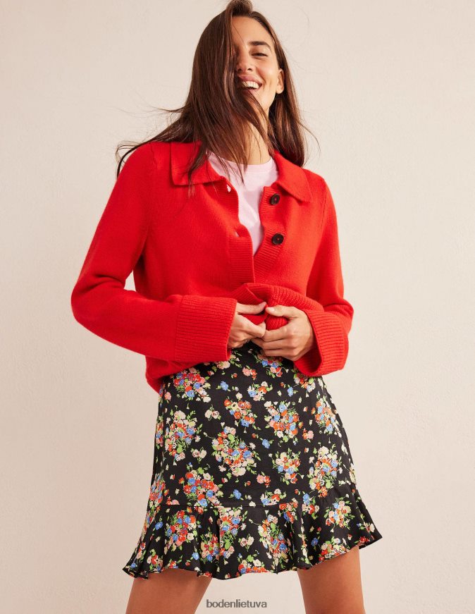 Šis satininis mini sijonas turi paslėptą šoninį užtrauktuką ir švelnų raukinį kraštą. palikome jį be pamušalo, kad siluetas tikrai judėtų.