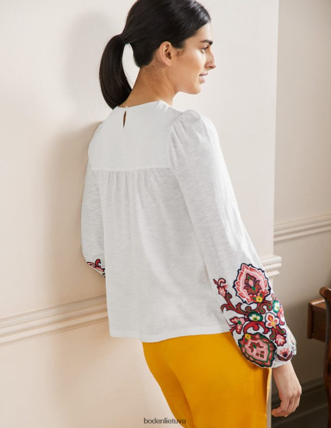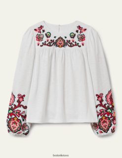 Pasveikinkite mūsų įspūdingą viršutinę dalį – ji suteikia spalvingo postūmio kasdieniams drabužiams. Sukūrėme jį patogiai iš medvilnės mišinio, o korpusą padarėme pusiau aptemptą, su daugybe susitraukimų, kurie suteikia judesio. dosnios viso ilgio rankovės baigiasi tampriais rankogaliais, suteikiančiais akį traukiančią palaidinės formą. Žinoma, čia yra ryškus siuvinėjimas nuo rankogalio iki alkūnės ir priekyje.