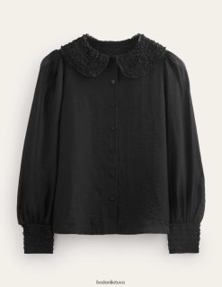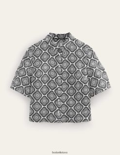 Kurdami marškinius be rankovių įgavome nedidelę formą, tada pradėjome dirbti su elegantiškomis detalėmis. pagalvokite apie tvarkingą stovinčią apykaklę ir siuvinėjimą, taip pat raukšles priekyje ir aplink rankas. jis užsisega subtiliomis dramblio kaulo spalvos sagomis. Norėdami perkelti dalykus į kitą glostymo lygį, pridėjome sumaniai išdėstytų rinkinių.