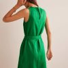 atpalaiduojantis stilius, puikiai tinkantis atostogoms ir šiltoms dienoms namuose. Ši maksi suknelė yra iškirpta iš medvilnės su smėlinu liemeniu, įrėmintu pūstomis rankovėmis ir a krentantis pakopinis sijonas.