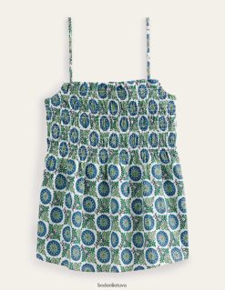 apranga lt Boden moterys smocked Cami top egėjo mėlyna ir saulėgrąžų šakelė 284XZZ99