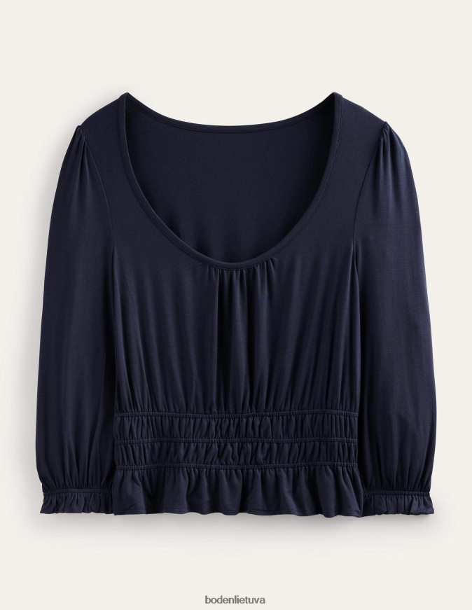 Su išskirtiniu trikotažiniu juosmeniu ir palaidinėmis rankovėmis šis tamprus trikotažas suteikia romantišką pojūtį. kaušelio iškirptė puikiai tinka demonstruoti sluoksniuotus papuošalus.