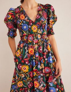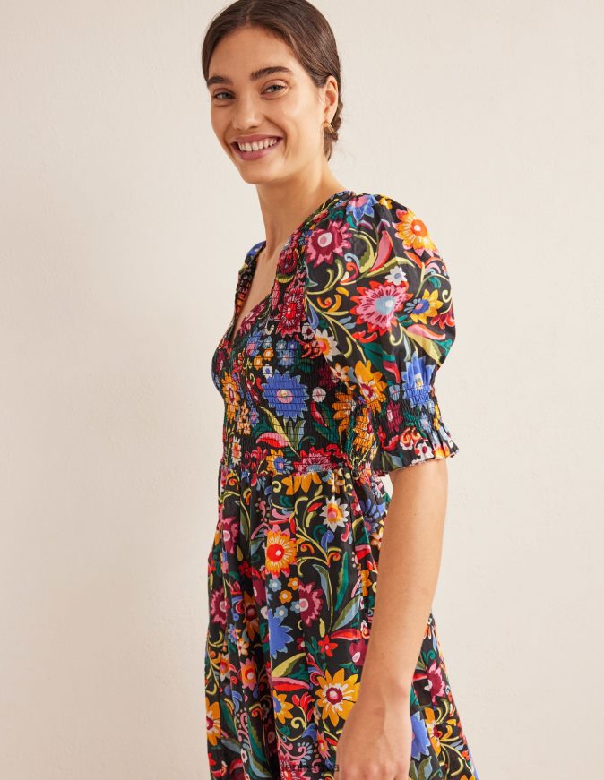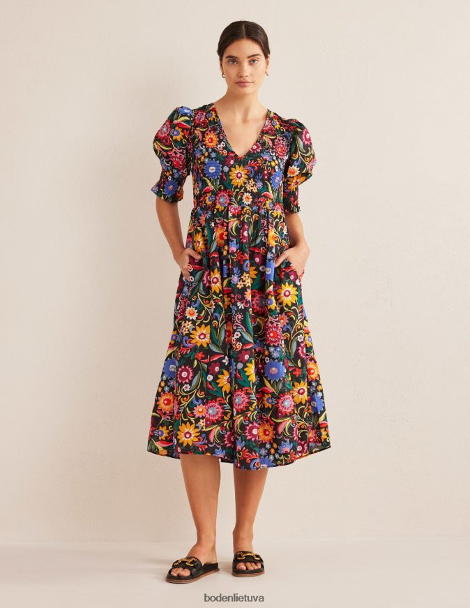šios medvilninės midi suknelės aptemptas liemenėlis tinka įvairiems kūno tipams – yra tamprus ir glostantis. jis baigtas pūstomis rankovėmis ir gilia iškirpte, todėl ją galima dėvėti tiek dieną, tiek vakare.