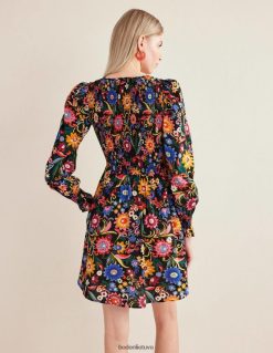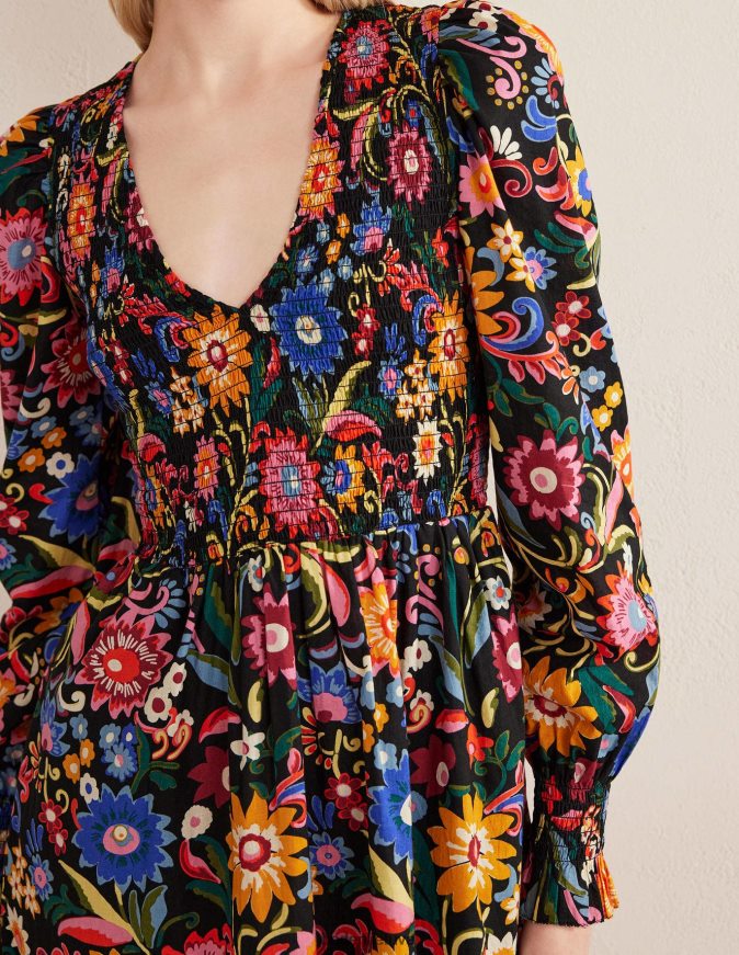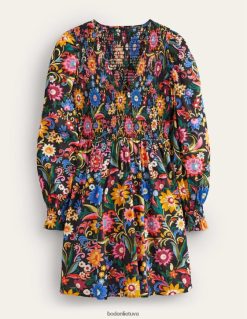 Rūkymas sukuria prigludusį siluetą, kuris yra vienodai įspūdingas ir patogus – taip pat išryškina šios medvilninės mini suknelės apverstą kraštą.