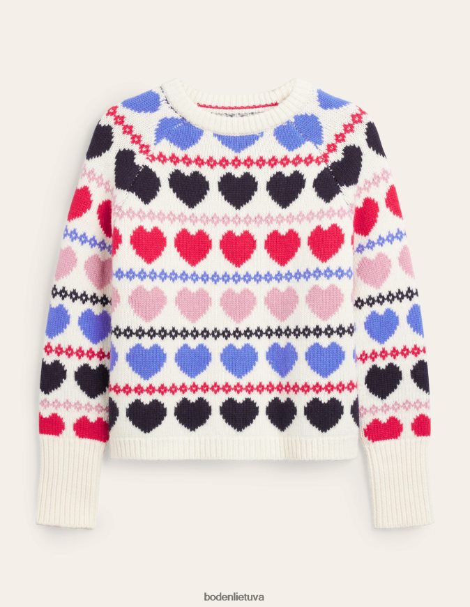 Šis stambus vilnos mišinio mezginys, žaismingas tradicinio mugės salos stiliaus, yra jaukus, su įvairiaspalviu širdies dizainu ir briaunelėmis rankogaliai, apykaklė ir apačia.