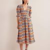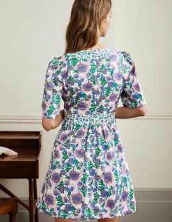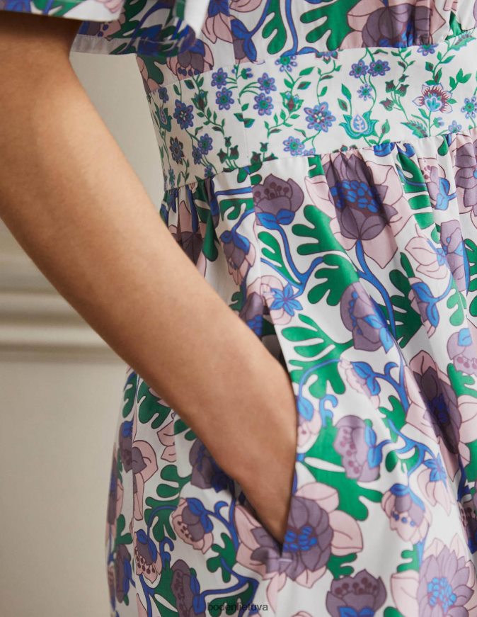 mūsų suknelė su spaudiniais virš kelių, pagaminta iš medvilnės ir sukirpta iki lengvos, pusiau aptemptos formos. du atspaudai visada yra geriau nei vienas, todėl pridėjome kontrastingą raštą prie glostančio, kampuoto juosmens ir gilaus V formos kaklo. minkšti raukšlės ant pečių trumpoms rankovėms suteikia plazdėjimo apimties. taip pat yra nematomas užtrauktukas ir šoninės siūlės kišenės.