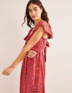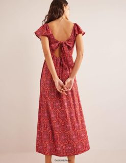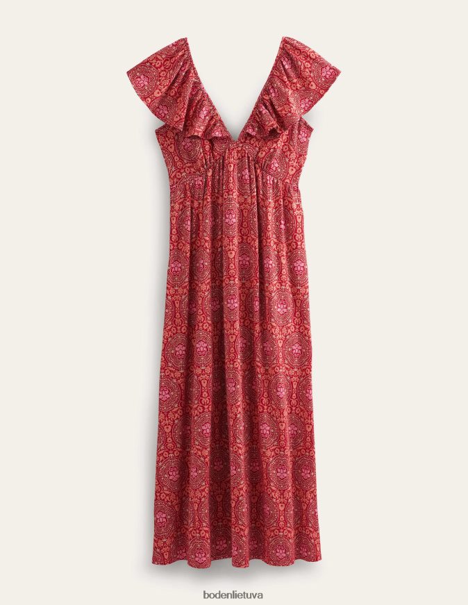 apranga lt Boden moterys surišama trikotažinė maxi suknelė puansetija ir egzotiška plytelė 284XZZ1168