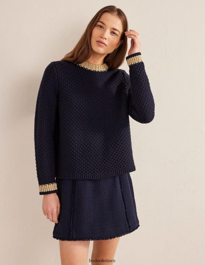 Šio vilnos mišinio megztinio akmenukų tekstūra išlieka jaukus ir įdomus. jis suformuotas taip, kad priglustų, todėl puikiai tinka sluoksniavimui. metalo aukso apdaila suteikia puošnumo.