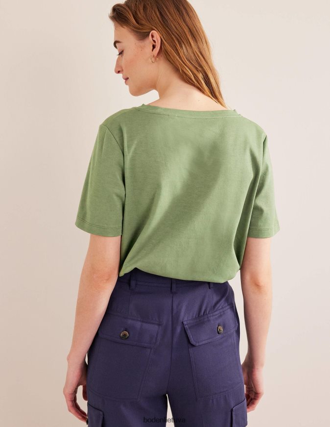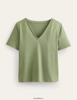 Sukirptas iš (tikrai) minkštos supimos medvilnės, šis marškinėliai su V formos iškirpte trumpomis tiesiomis rankovėmis pabrėžia dėmeles.