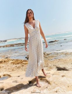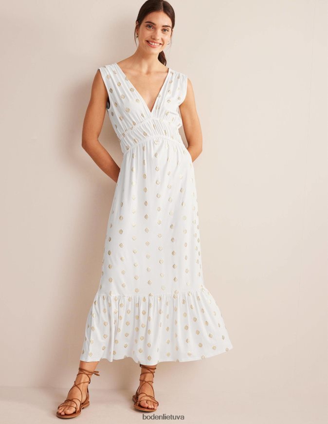 Šios maksi suknelės plaukiojantis daugiasluoksnis sijonas yra sutvirtintas formą apibrėžiančiu smėlinuotu juosmeniu. Išpuoselėta visapusiška spauda, įdubusi V formos iškirptė daro tai universaliu stiliumi, kurį galite nešioti nuo dienos iki nakties.