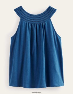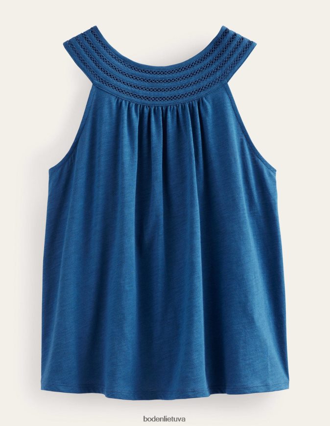šio berankovio trikotažo svyruojantis siluetas yra pritvirtintas prie nėrinių pavidalo apipjaustyto jungo – jis prigludęs prie raktikaulių, prieš apsivilkdamas kūnas. stilizuokite sustumtą arba laisvą.