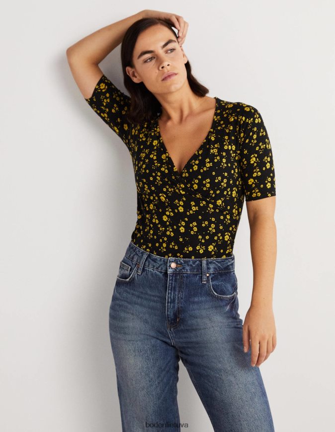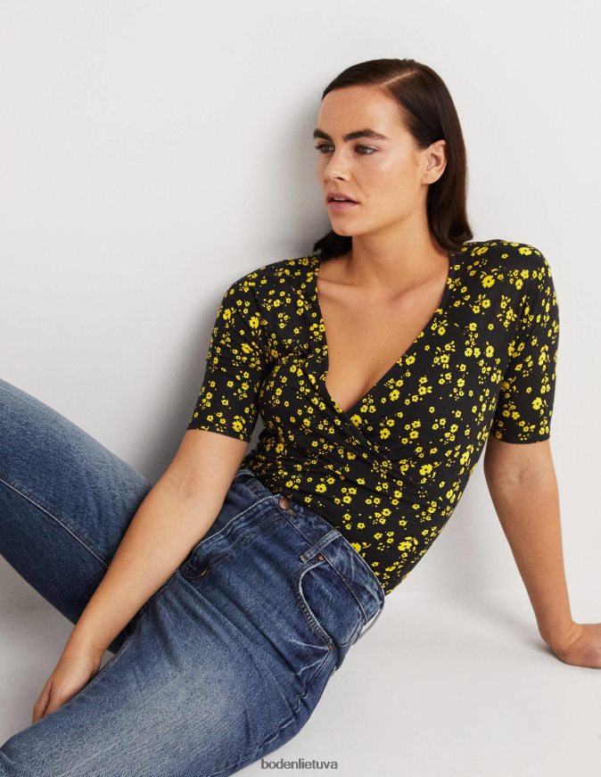 apranga lt Boden moterys trumpomis rankovėmis apvyniotas viršus juoda ir gėlėta šakelė 284XZZ146