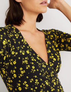apranga lt Boden moterys trumpomis rankovėmis apvyniotas viršus juoda ir gėlėta šakelė 284XZZ146