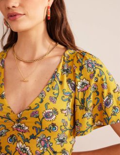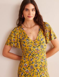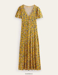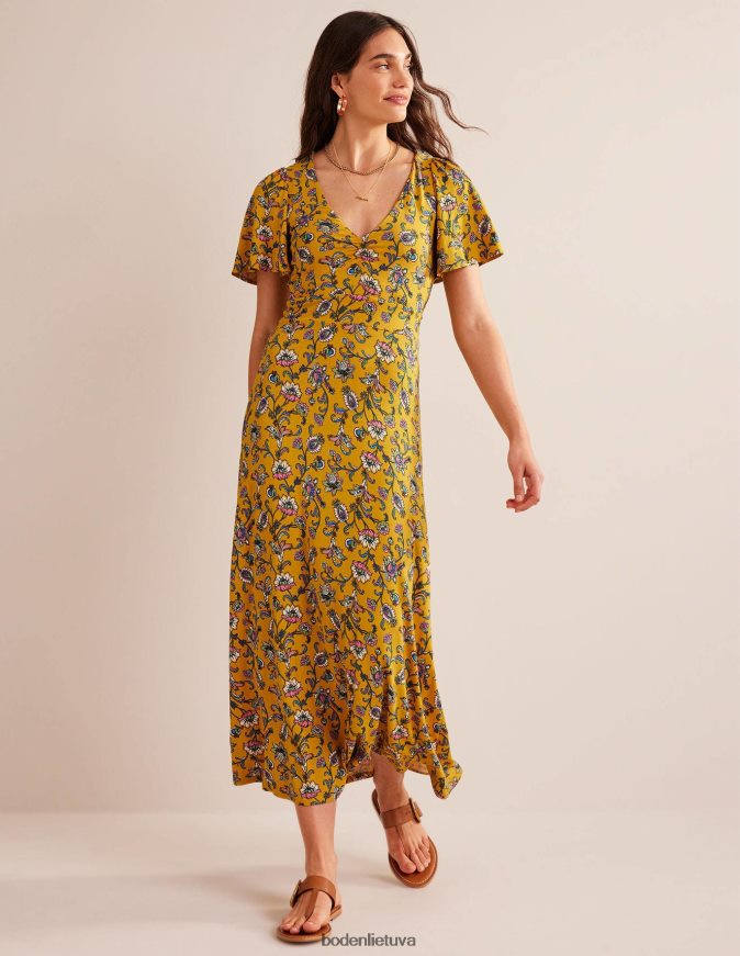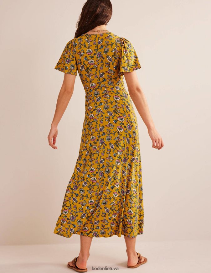 Lengva, kasdieniška suknelė, pasižyminti skirtumu: ši „midi“ turi plazdančiomis rankovėmis ir išskirtinį V formos iškirptę. skystas sijonas yra toks, kokį galite dėvėti prie baseino, mieste, o paskui vakarieniauti.